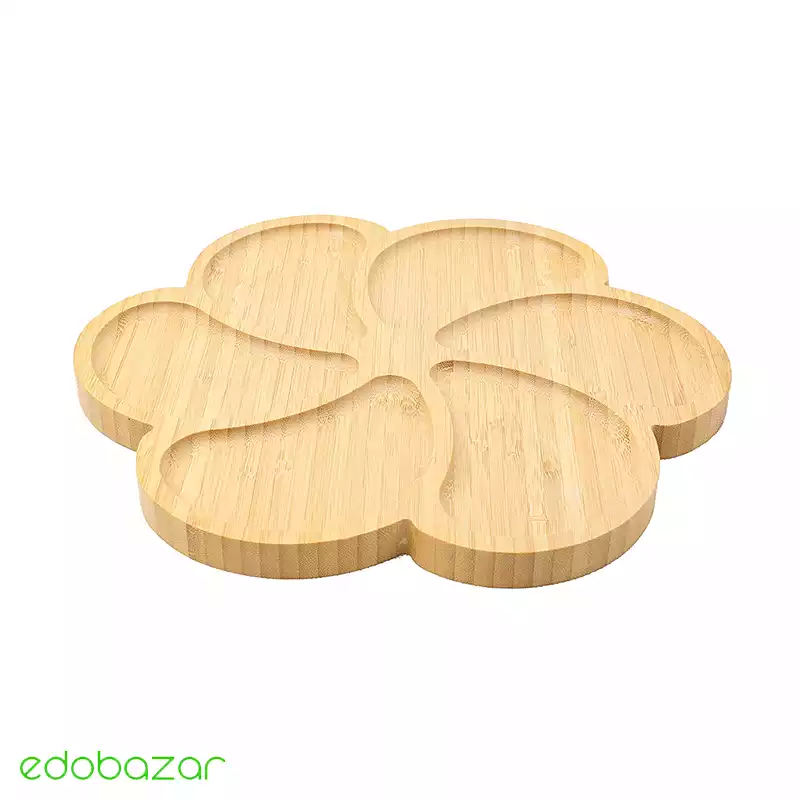 سینی مزهخوری طرح گل بامبو یک محصول کاربردی و فانتزی برای سرو انواع مزه، تنقلات و پیشغذا است. این سینی از بامبو طبیعی و مقاوم ساخته شده و طراحی گلدار آن جلوهای زیبا و جذاب به میز پذیرایی میبخشد.