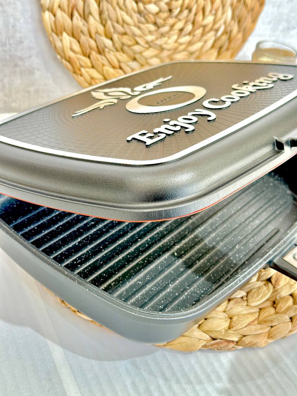 جنس بدنه: ترکیبی از آلومینیوم یا چدن با روکش گرانیتی، که موجب توزیع یکنواخت حرارت و جلوگیری از چسبیدن غذا میشود.