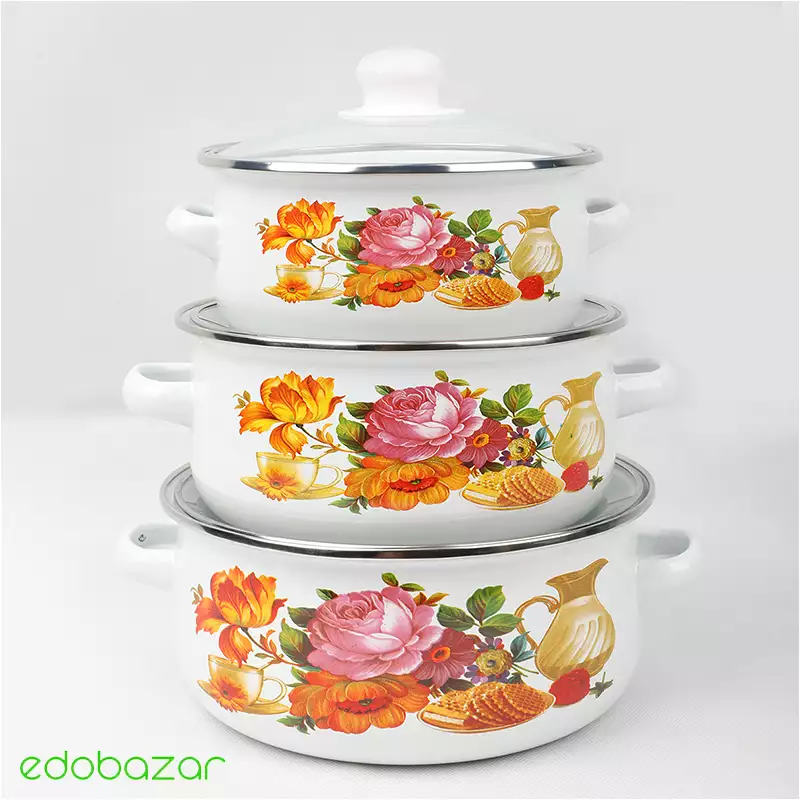 قابلمه لعابی سه عددی یک مجموعه کاربردی برای پخت و پز روزمره است که شامل سه سایز مختلف قابلمه میشود. جنس لعابدار مقاوم این قابلمهها مانع چسبیدن غذا شده و شستشوی آسانی دارد.
