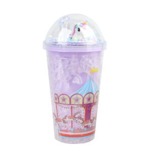 لیوان اسموتی با طراحی یونیکورن، ظاهر بسیار جذاب و کودکانهای دارد. لیوان به شکل یک شیشه ماسون است که از پلاستیک شفاف ساخته شده و با یک درب صورتی و یک نی راهراه صورتی و سفید تزئین شده است. مشخصات این ماگ موارد زیر است: